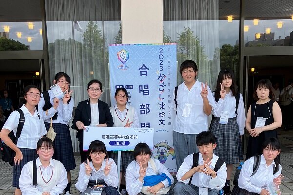 8月4日(金)、鹿児島市の宝山ホールで開催された第47回全国高等学校総合文化祭(2023かごしま総文)に合唱部が出場し、金子みすゞの詩を合唱曲にした「私と小鳥と鈴と」と、これまで慶進祭などで歌い継いできた「群青」の二曲を披露しました。講師の先生方からは、「『群青』は情景が浮かぶ素敵な歌でした。」(本山秀毅先生)、「少人数でありながら歌詞に寄せる想いが伝わってきました。男声二人が女声をしっかり支えていてとても良かったです。」(桃坂寛子先生)というご講評をいただきました。前日の交流会では、鹿児島の高校生によるたくさんの企画を全国の合唱部とともに楽しむこともでき、美しいハーモニーと熱気に包まれた素晴らしい大会となりました。
