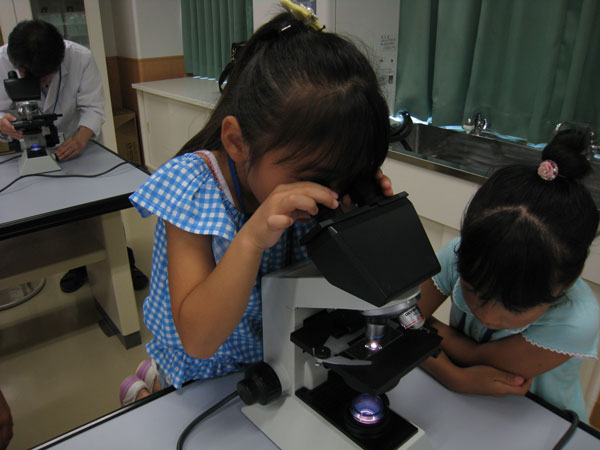 7月30日(土)、本校にて、サイエンスクリニックを実施しました。 「微生物を観察して、模型を作ろう」をテーマとして、まず顕微鏡を用いて微生物を観察し、おゆまるくんという温度によって形の変わるプラスティック粘土で微生物の形を作っていきました。核や葉緑体はビーズを使い、べん毛は糸を使って再現しました。多くの児童の皆さんや保護者の方々も楽しみながら参加されていました。