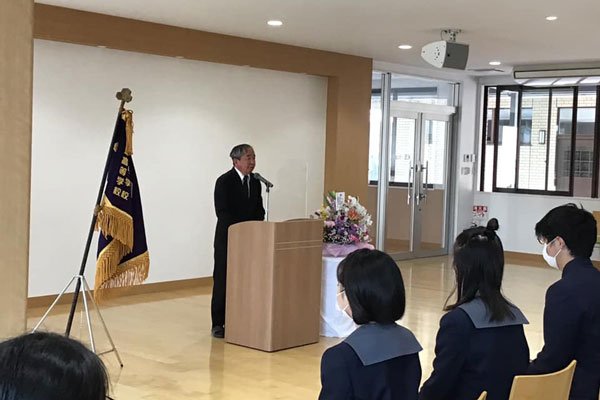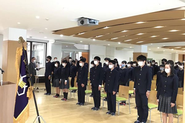 なお、新型コロナウイルス感染症防止対策のため、会場には中学校3年生だけが入り、中学校1・2年生はyoutubeライブ配信で式の様子を見ました。