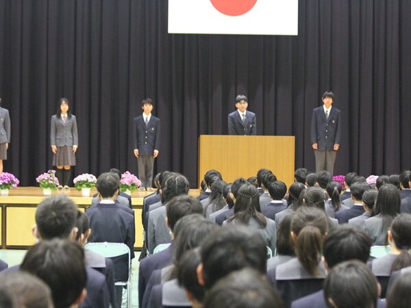 4月7日(火)、令和8年度慶進高等学校中高一貫コースの進級式が保護者、在校生および教員の参列のもと挙行されました。進級生一人ひとりが壇上に上がり、「立志の言葉」を堂々と宣言しました。